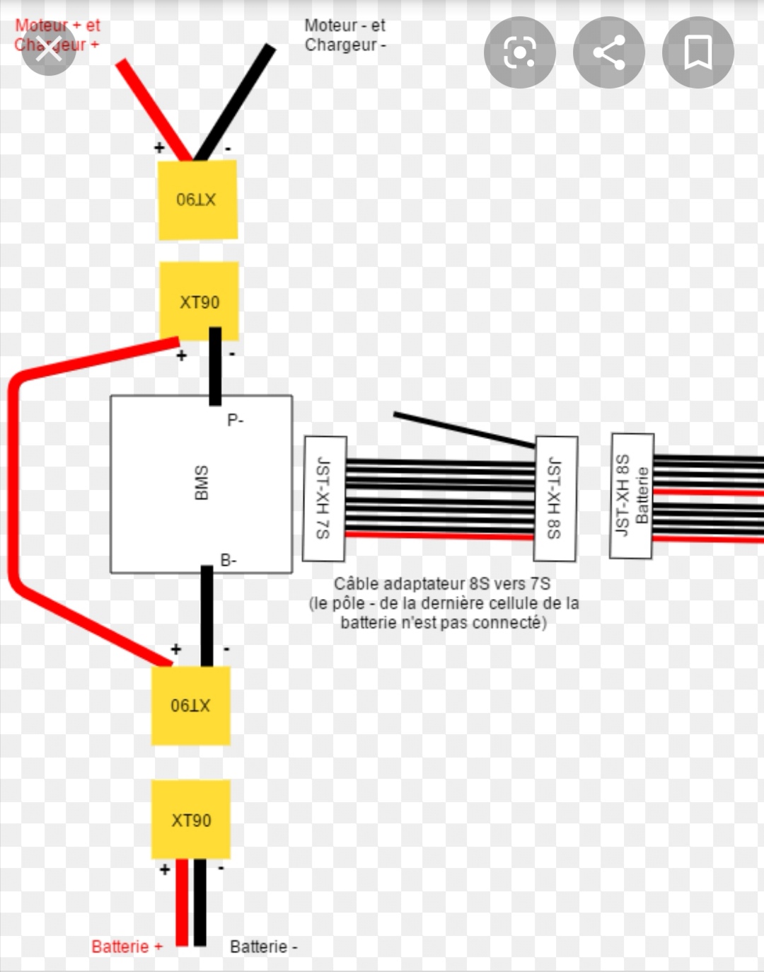 Si vous avez, j’aimerais bien avoir un schéma où le bms est branché pour équilibrer la charge + la décharge et un autre schéma où le bms ne fais qu’équilibrer la charge pour pouvoir comparer les deux.