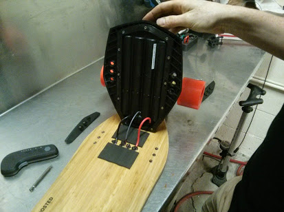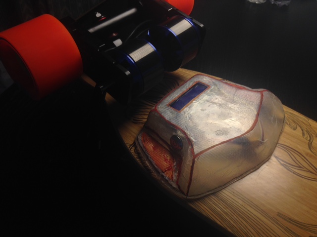 Je pense augmenter le contenant, juste en décalant les arrêtes du côté. par contre pour la fixation c’est top; je vais garder le même système que boosted et renforcer avec du carbone. Le boitier final sera en epoxy.