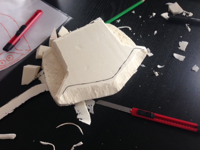 la mousse je l’ai désintégrée hier en démoulant, de toute façon c’était du vite fait. Pour faire le modèle en mousse, il faut maximum 15 minutes. Pour la réduction d’échelle, je vais voir comment tout rentre et je le ferais au papier stylo avant de faire le modèle en mousse.