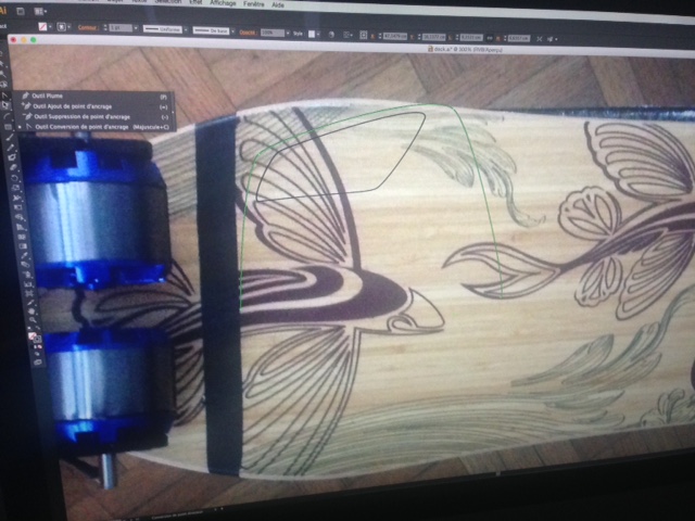 tu fais un patron (vue de haut) sur du papier transparent de ton deck, ou du moins d’un endroit de ton deck (en gros les deux bords de ton deck pour avoir un repère)