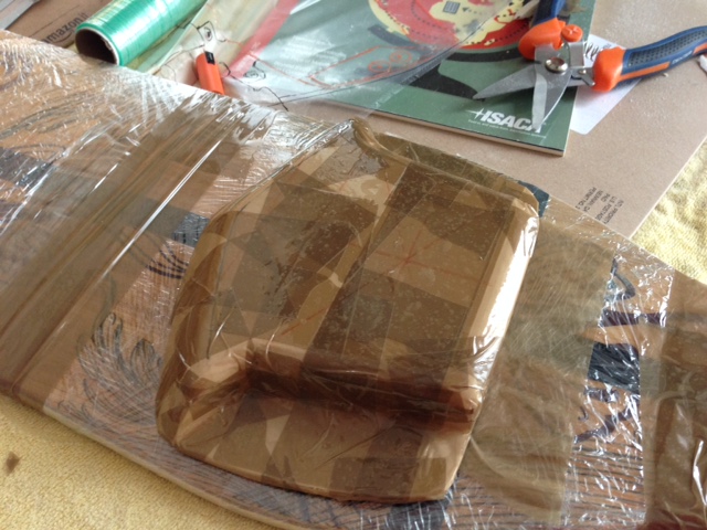 et tu a mis quoi sur la mousse avant de mettre la résine (c’est pas du cellophane ? ,du scotche ? )