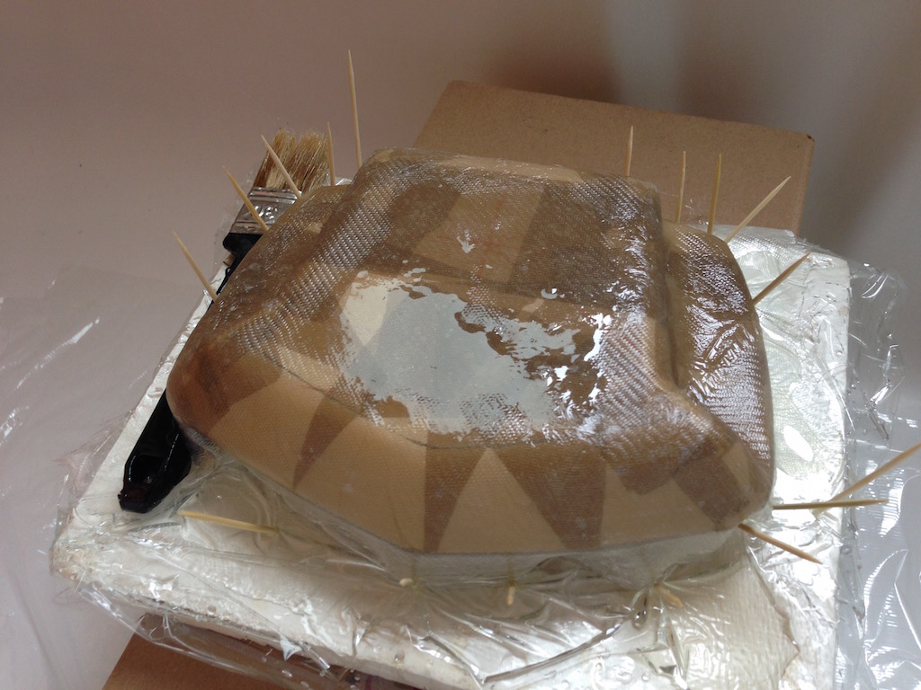 merci, voici des images de la polymérisation. Pour faire une coque comme celle ci, il faut 50g d’epoxy et 25g de durcisseur - soit 50% (Résine 164). Deux couches de fibre de verre d’environ 30cm x 25cm
