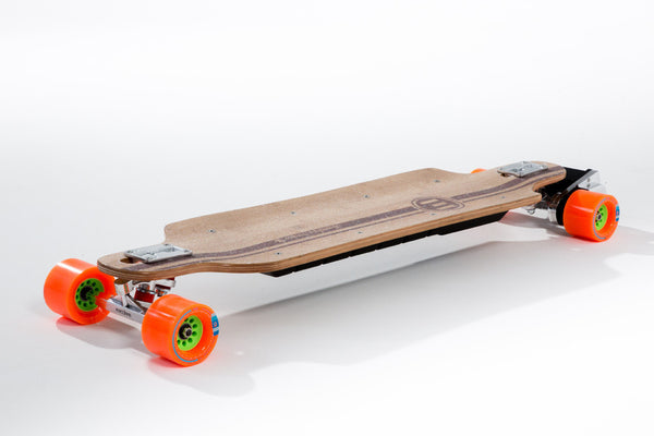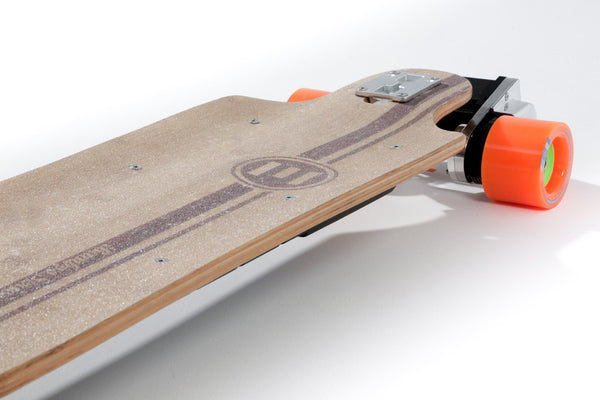 La planche en W concave confère un confort extrême et le nouveau contrôleur électronique introduit le « regenerative break ». Nous annonçons jusqu’à 30km d’autonomie en balade tranquille. Il n’était pas simple de proposer meilleur plaisir de glisse que notre précédent modèle bambou Pintail ou Snubnose, nous l’avons fait !