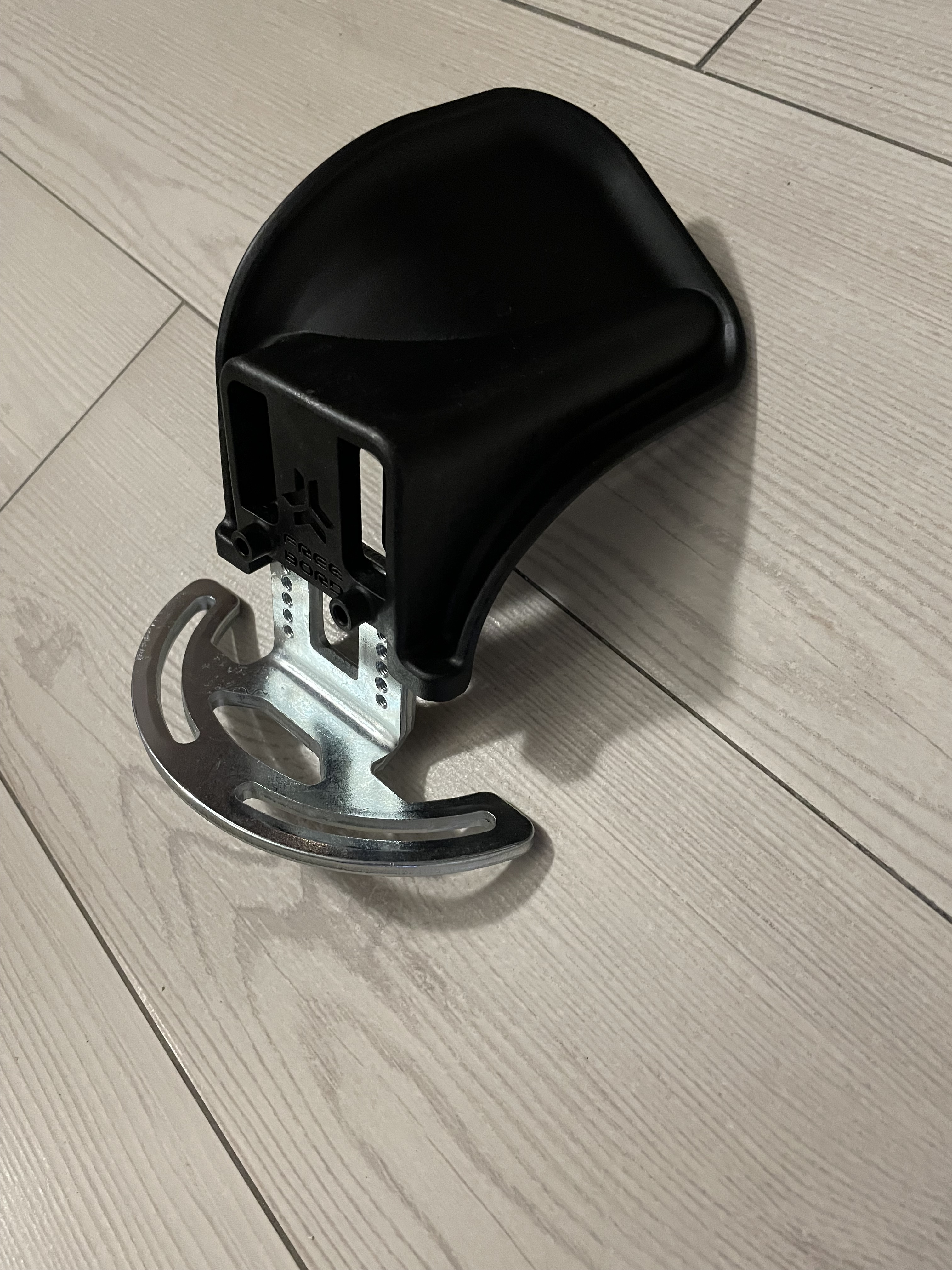 Pour bien placer les hook je les avait positionné sur mes pieds tout en étant sur la board, puis marqué au feutre les trous à faire. Comme ma board avait es tails qui remontaient, j’avais tordu les support en acier des hook avec un étau + masse, afin de pouvoir les fixer sur les tails, et ne pas perdre en écartement des pieds.