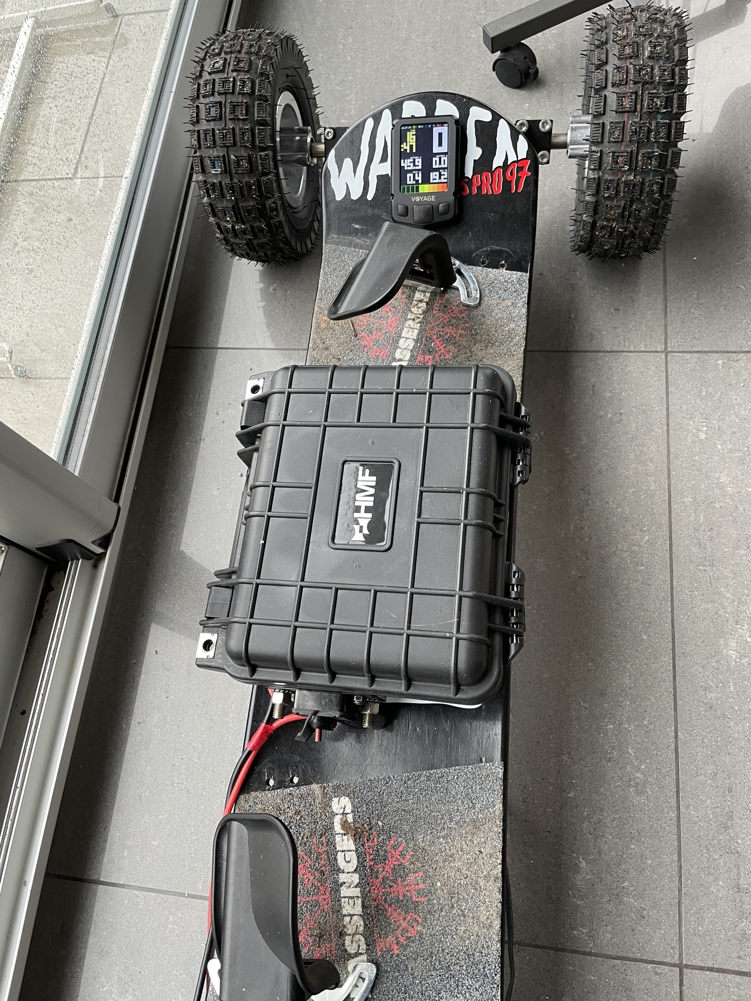 de loin ma meilleur board. Impossible de rouler à plus de 25 dans cette boue. Pas mécontent d’avoir chiader l’étanchéité qui est perfectible. La remote a prix cher. Le seul truc propre c’est l’ecran BT Megan qui est traité anti salissures.