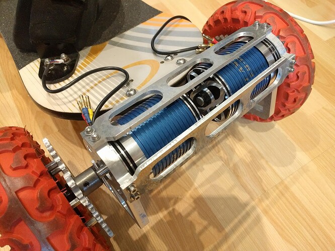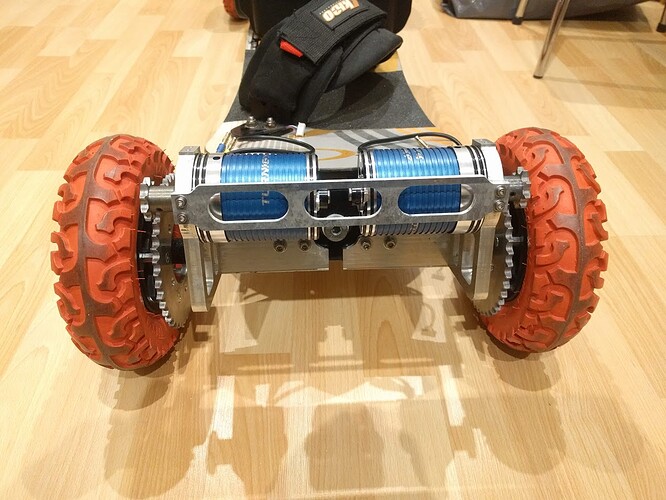 si je passe ma board en roue de 145 haggy je partirai sur une transmission chaine comme toi ,solide,durable,pas de saut au freinage etc …et pas cher pour trouver les bons ratios etc …