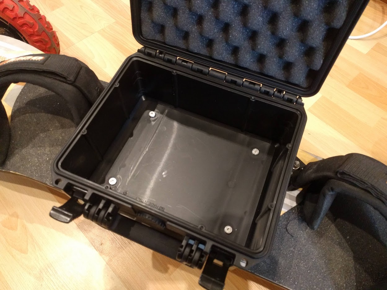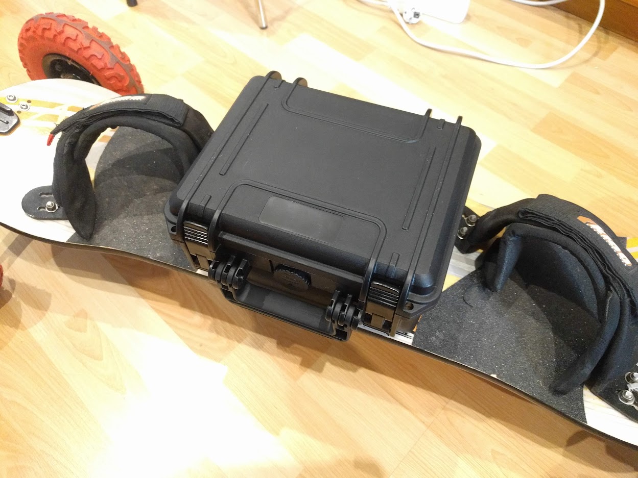Je n’arrive pas à trouver de « valise » comme celle des batteries par exemple à la bonne dimension qui me permette de loger les contros. Il faut pouvoir l’ouvrir et la fermer facilement pour accéder aux switchs de mise sous tension. Il faut quelle soit un minimum étanche. il faut pas qu’elle soit trop grosse, elle serai fixée sur l’arrière de la planche au dessus des tête de vis du truck arrière.