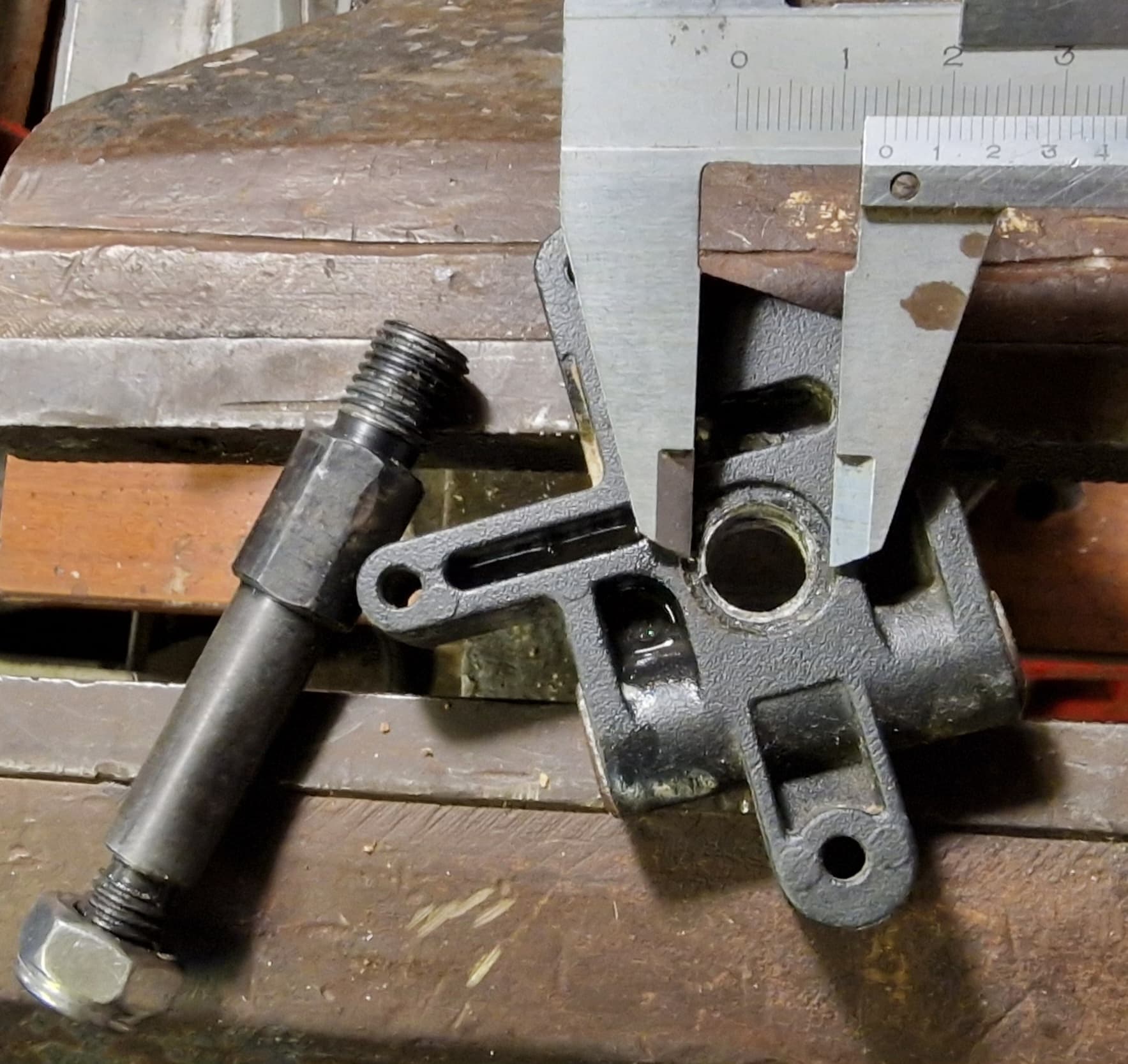 Filetage d’origine M12 . L’axe se devisse sans soucis… je vais percer a 14mm pour façonner mon axe de 16 avec un plat .