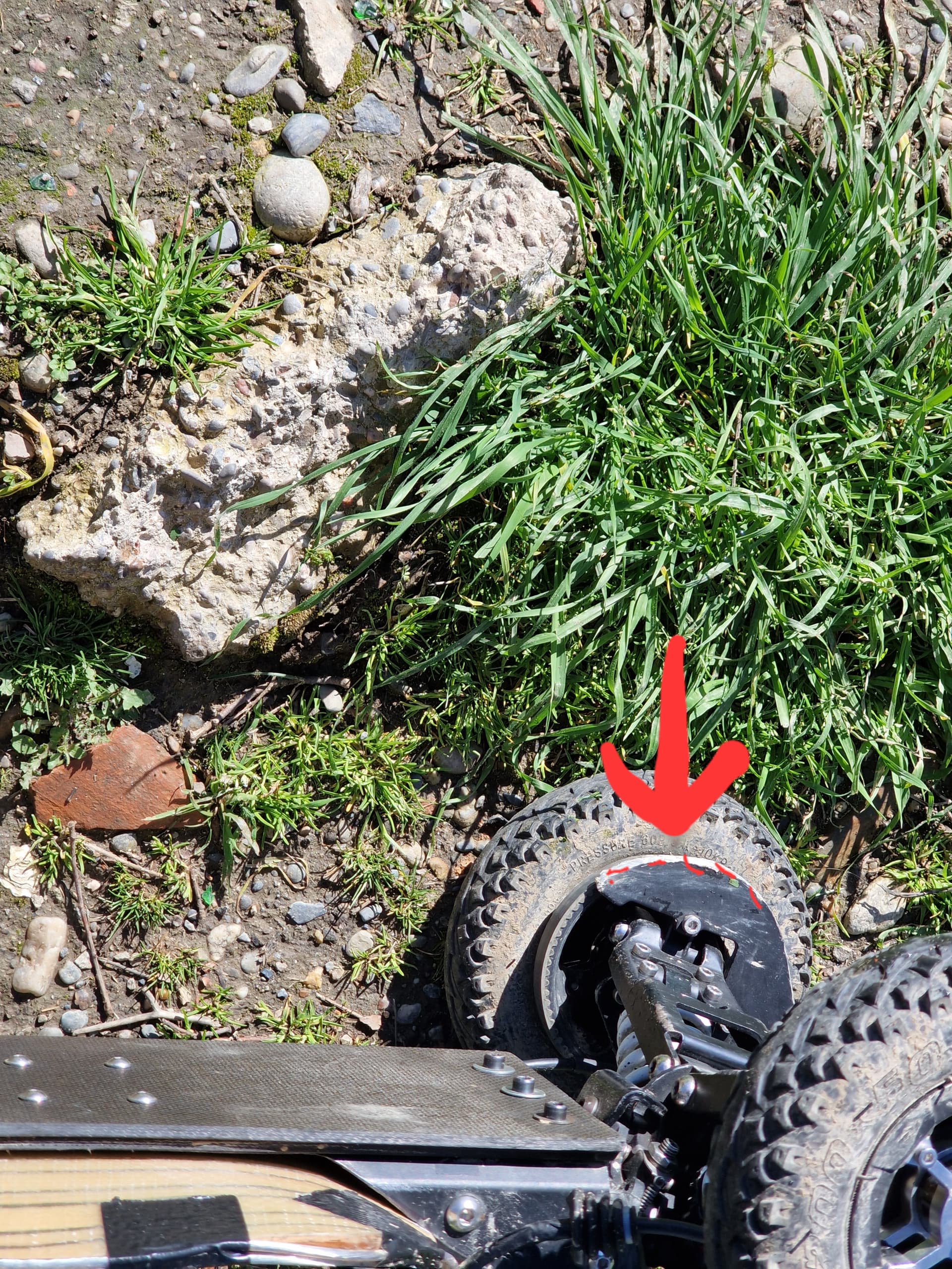 Pas de wooble , la board s’est stoppée net sur ce gravas bien planté . Jallais pas assez vite ![]()
