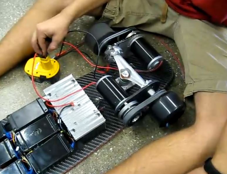 Le truc, c’est mes trucks… pour monter les moteurs dessus ça va pas etre simple, tout comme le fait de garder de la souplsse sur la board (elle est haute et si on saute dessus le plateau se plie jusqu’a toucher le sol) mais ça j’en fait mon affaire.