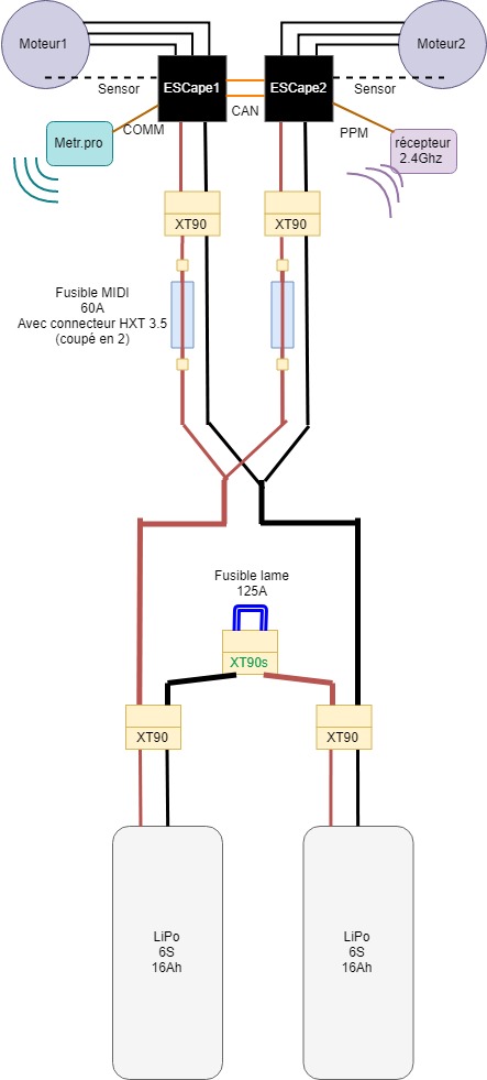 Pour le gros fusible, je pensais intégrer un lame qui fond dans l’anti spark XT90. Du coup, pas évident de la mettre dans liaison série, je vais peut changer de plan!
