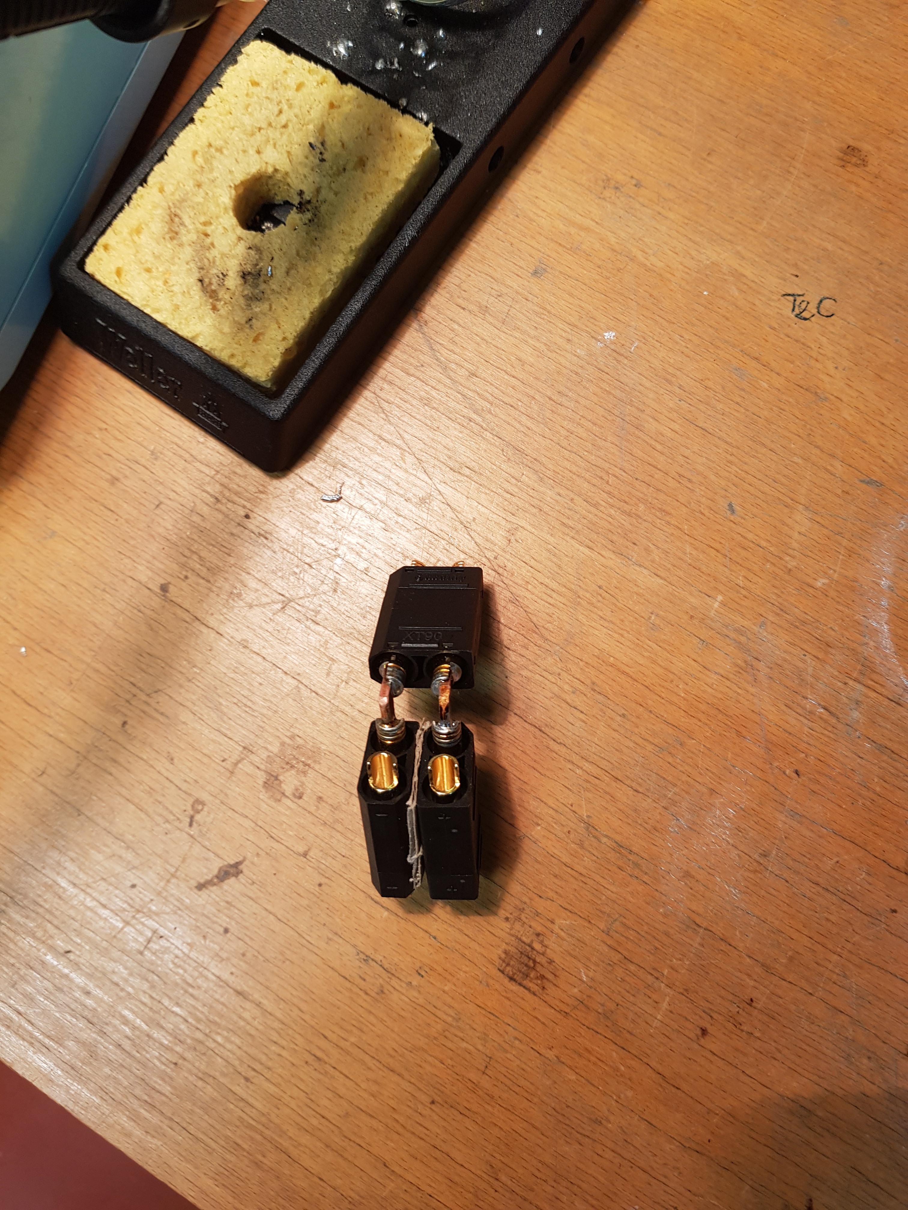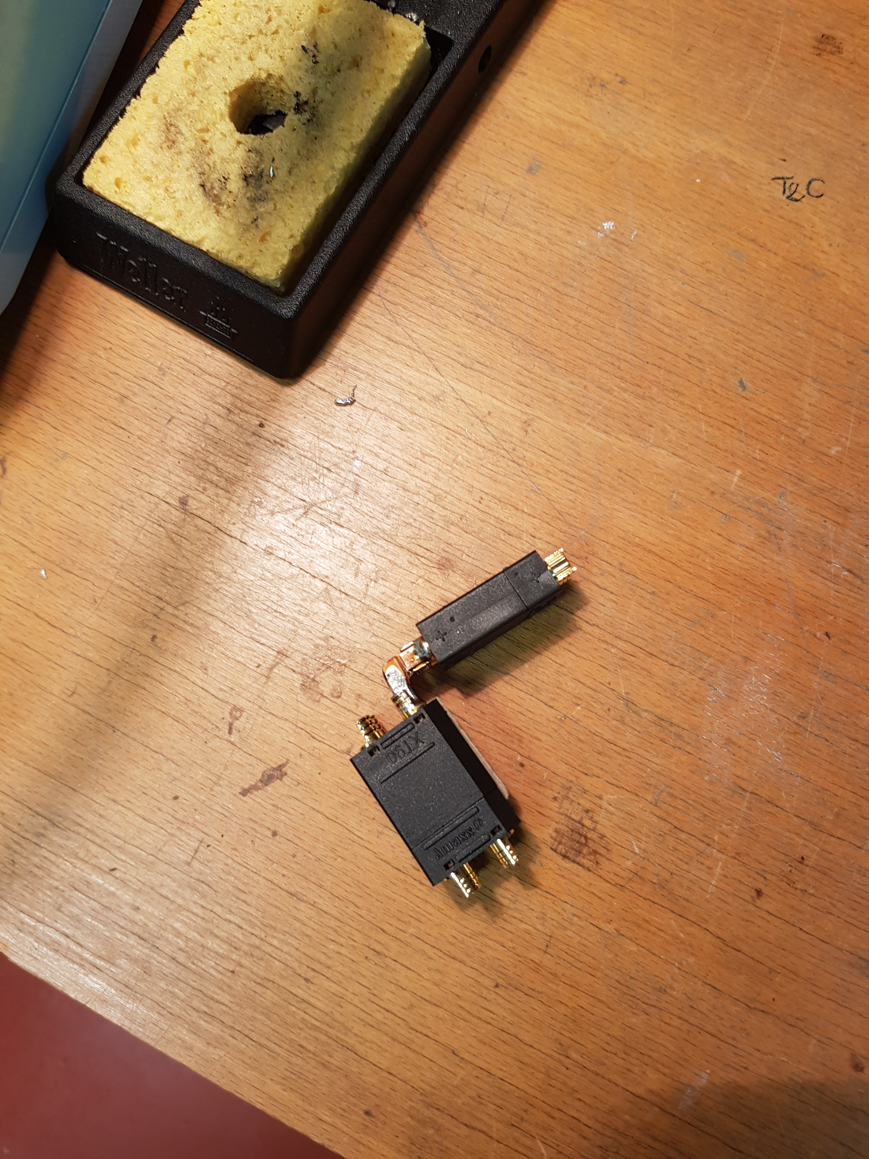 donc essaie de faire une pression mécanique entre le connecteur XT et l’équerre cuivre (pince étau , serre joint) afin que les surfaces de contact électrique se fassent au mieux avant figeage dans la soudure… :geek: