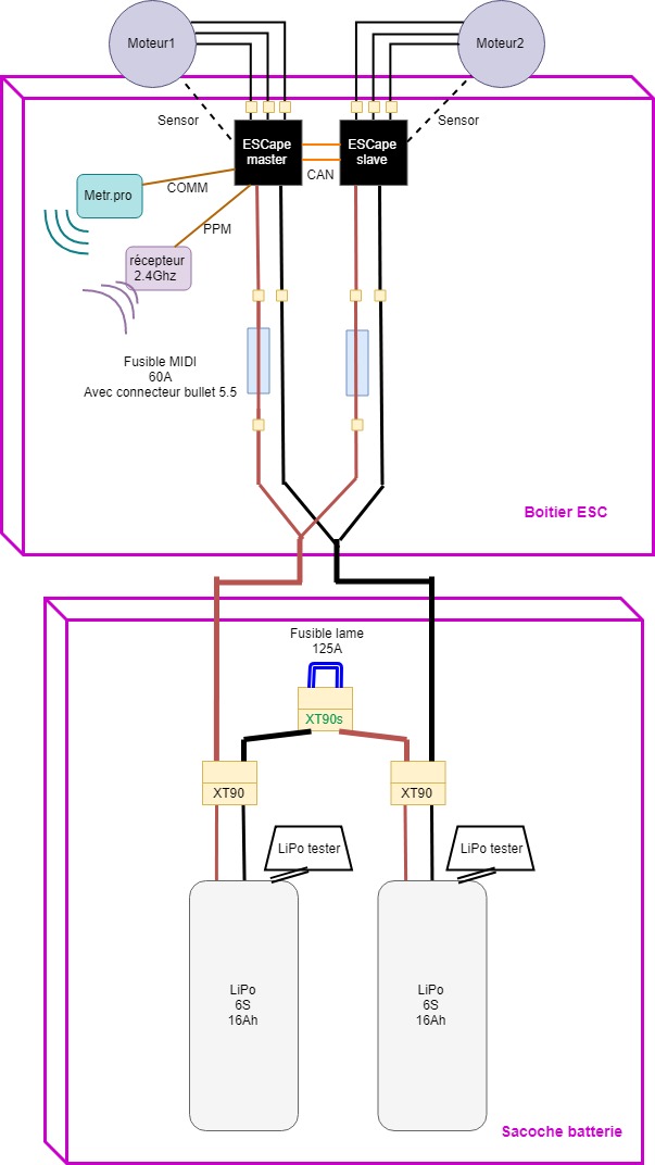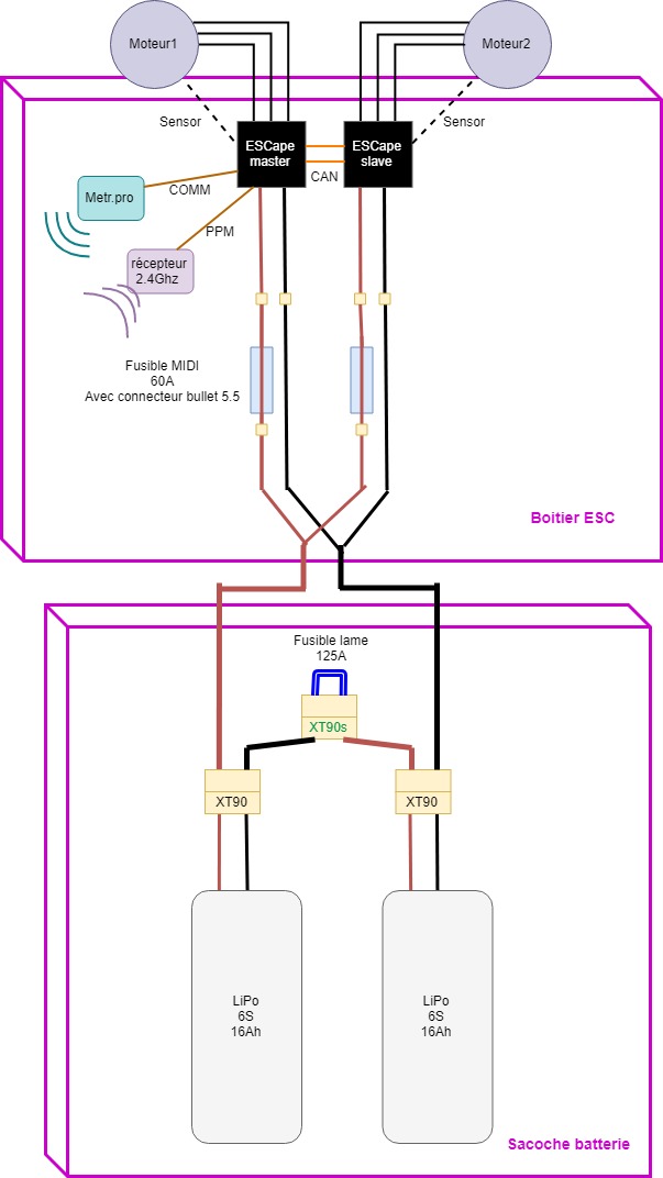 D’ailleurs passer les ESCape en bullet me fait gagner un connecteur. Donc après réflexion en live en écrivant ce message ce sera sans doute bullet 5.5 dans le boitier ESC :