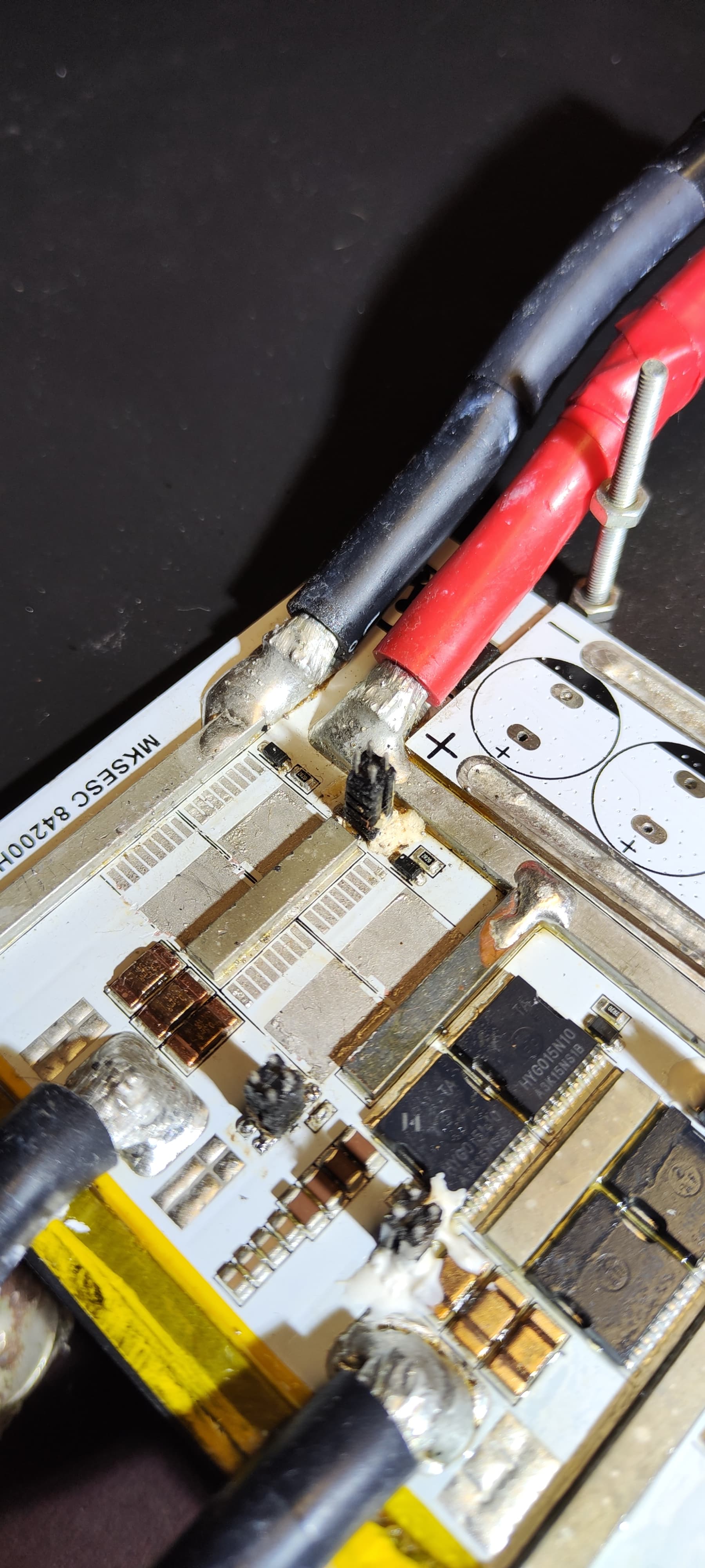 j’ai ressoudé les 2 pcb ensemble ainsi que les 6 condensateurs et là nickel cela fonctionne j’ai testé avec mon ancien moteur car tout était déjà en place et j’ai pu configurer avec vesc tool et faire tourner le moteur à fond.