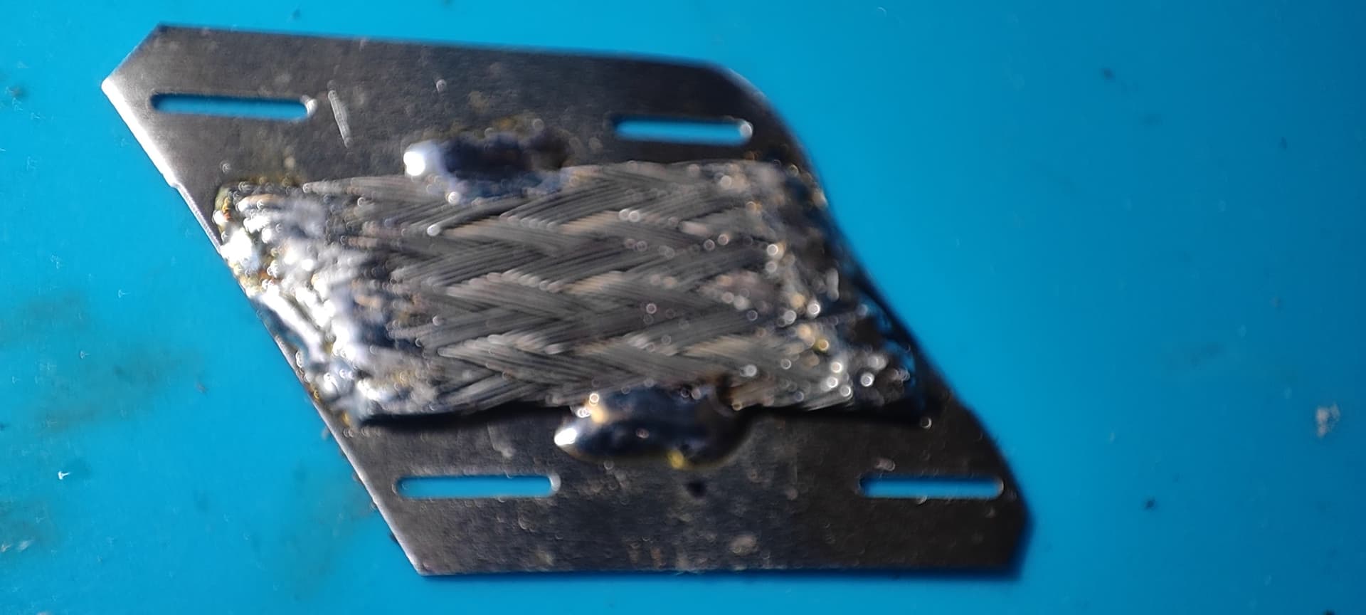 j’ai testé avec de la tresse de masse de 12mm de large épaisseur environ 2mm, cela se soude super bien, il y a un peu de main d’oeuvre mais c’est faisable faut juste que je fasse gaffe aux pointes de la soudeuse qu’elles ne touchent pas la tresse quand je pointerais. a votre avis ça peut le faire comme ça? ou je pointe d’abord un losange avant et stack par dessus celui avec la tresse?