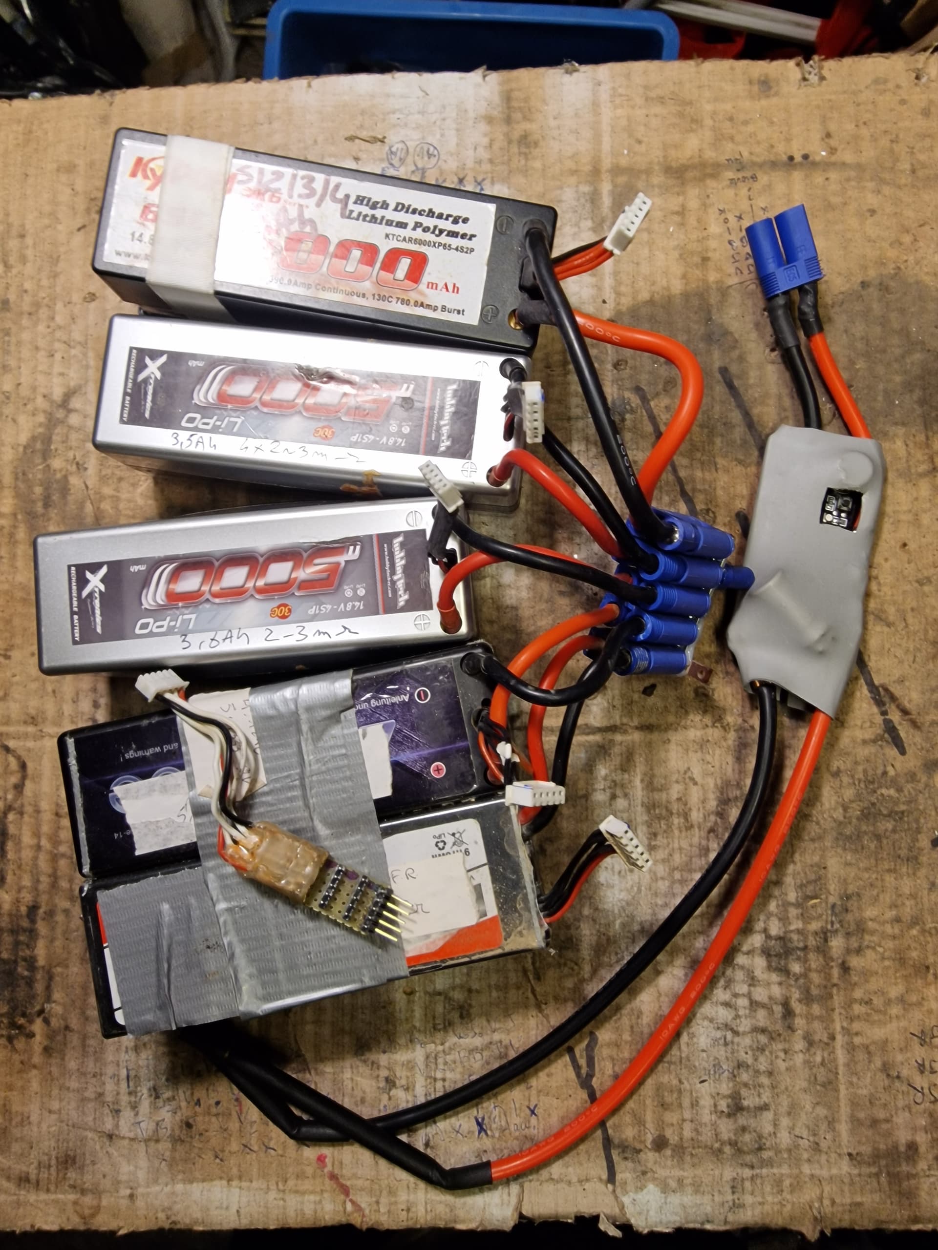 G un peu le meme matos ..optimisé avec du gros cable ,mais 5 lipo 4s recup poubelle ,qui restent a 3.7V