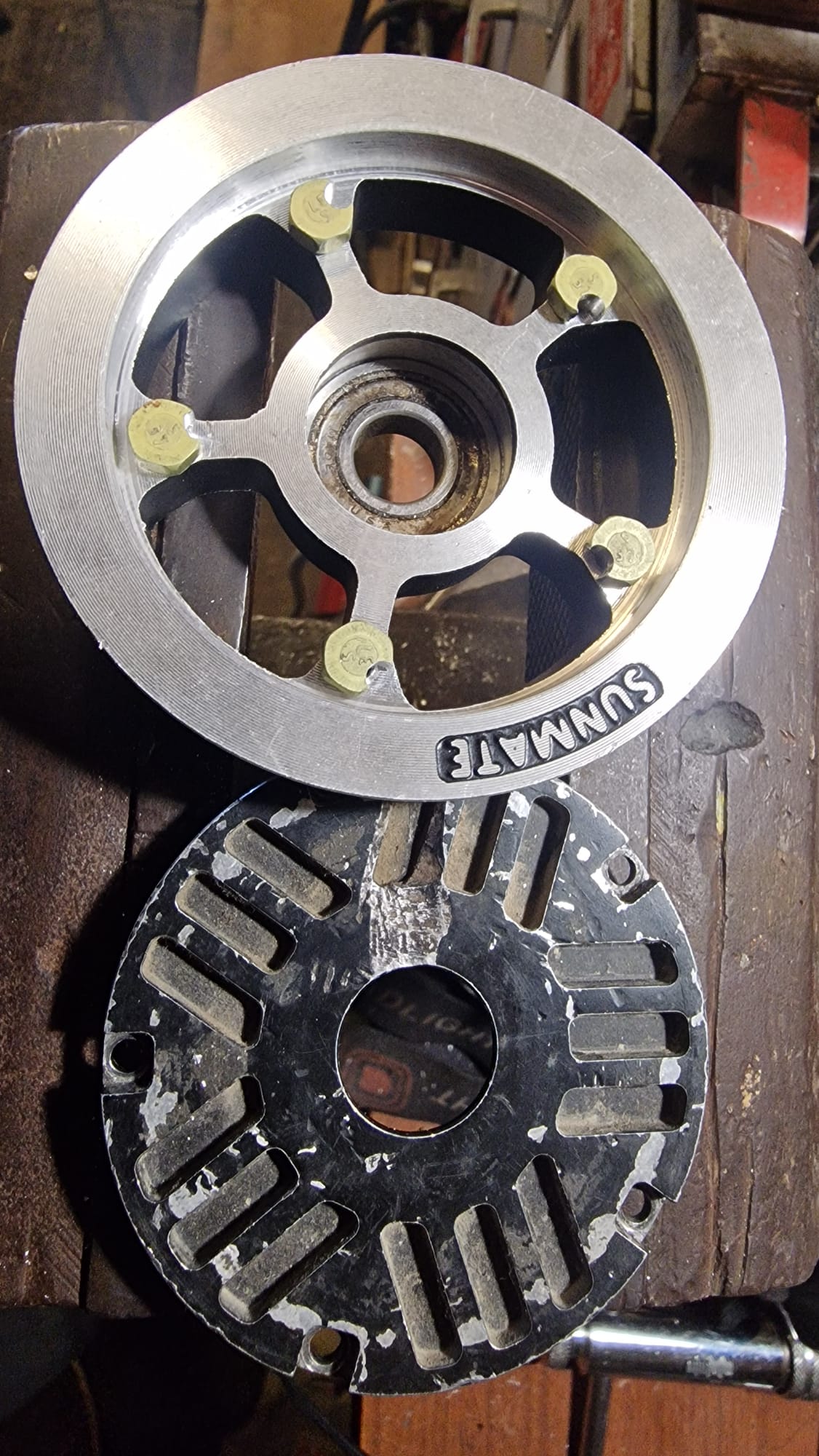 Aprés un passage par l’adaptation de jantes Evolve et leurs pneus 6’’ (94mm interne) ..assez facile : il suffit d’évider une demi-jante et 5 trous pour les vis M3 …