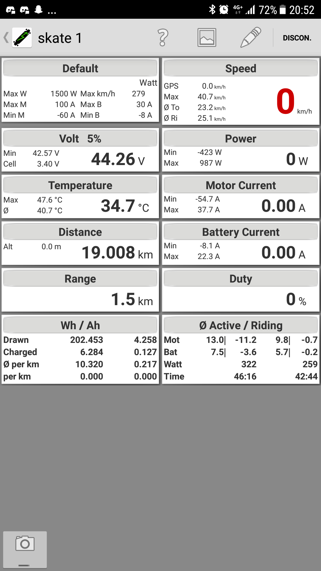 Le pourcentage de batterie indiqué correspond, dans VESC Monitor, à une valeur calculée à partir des pourcentages renseignées dans l’application, dans le menu “Battery Setup”. Il faudrait voir si cette échelle de valeurs/pourcentages est bien ajustée.