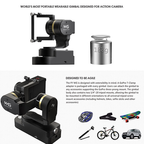 a force de comparer les gimbals je suis tombé sur la version ou finalement tu choisis si tu le mets sur une perche ou sur la board direct ou sur le casque ou le drone … :roll: autant en profiter et combiner les possibilités !
