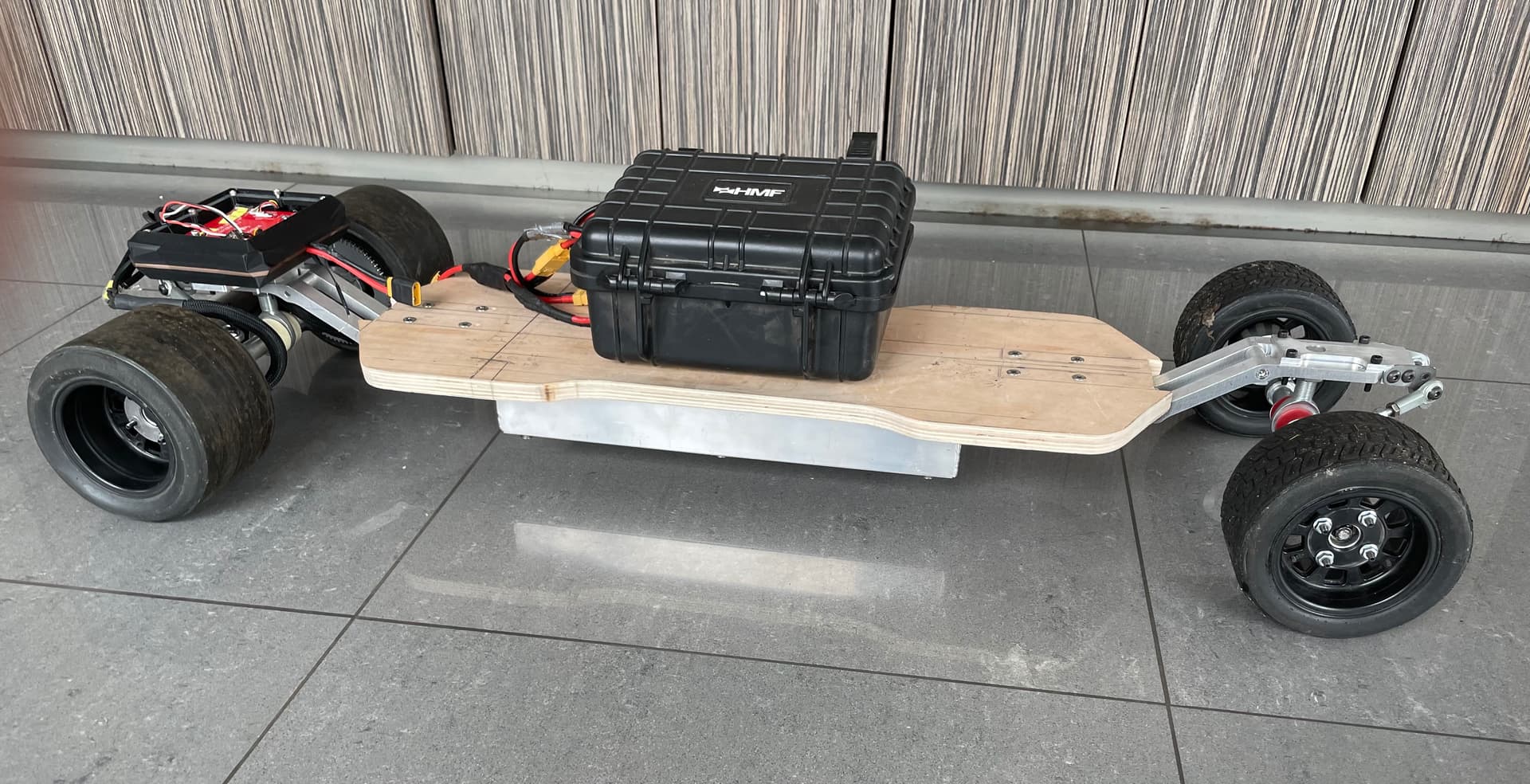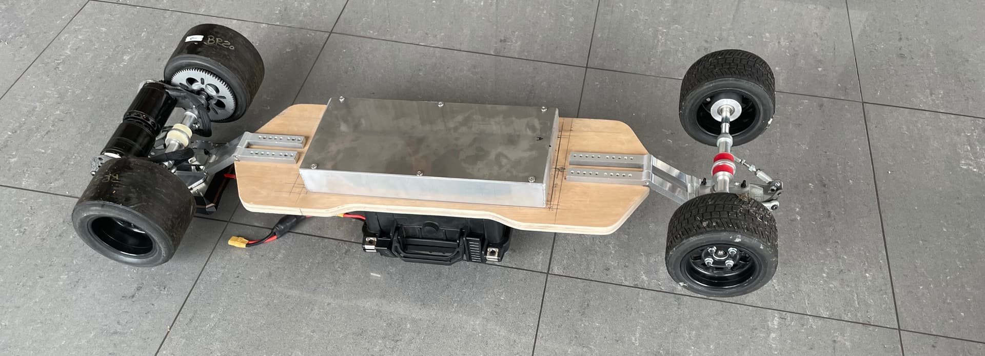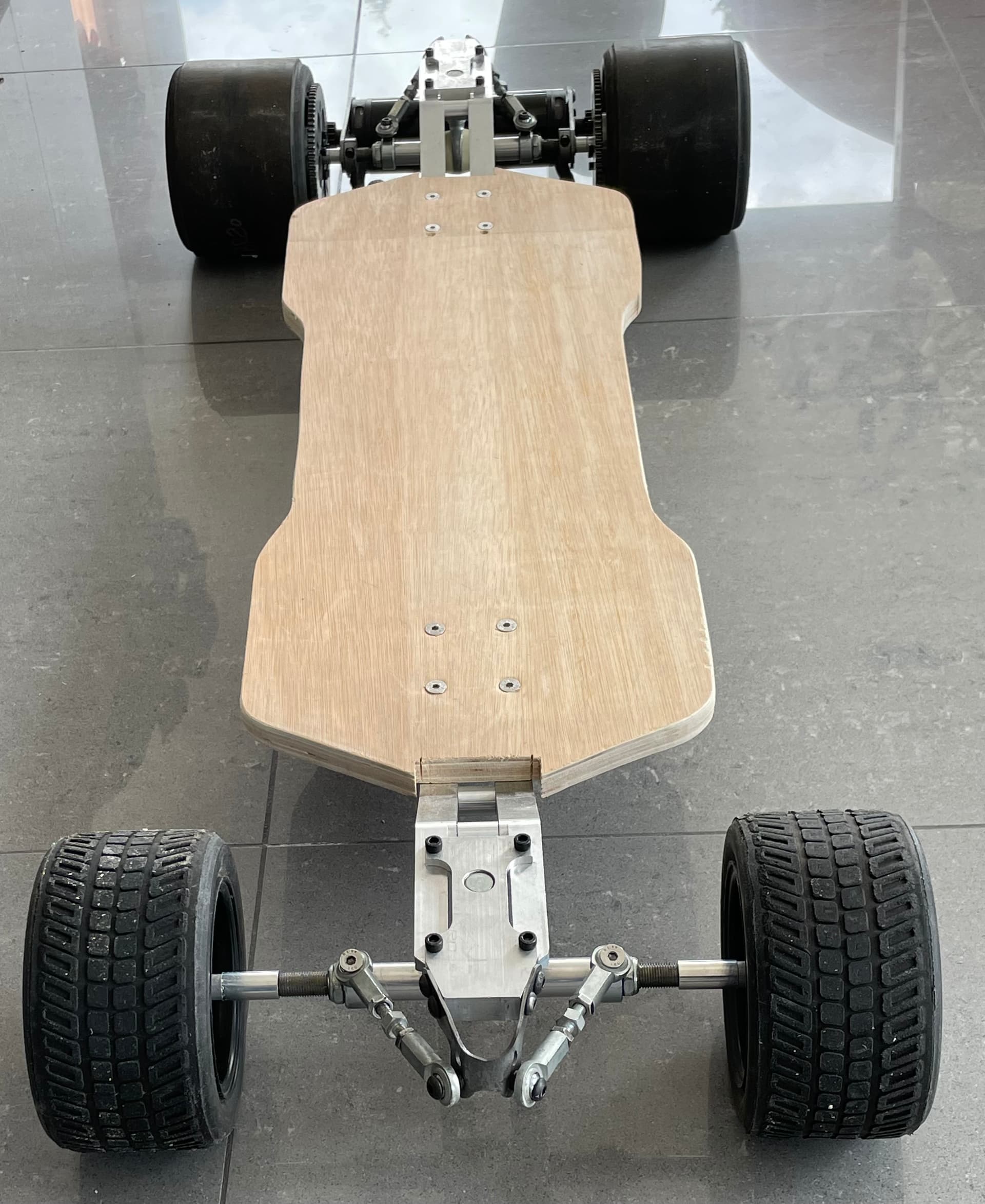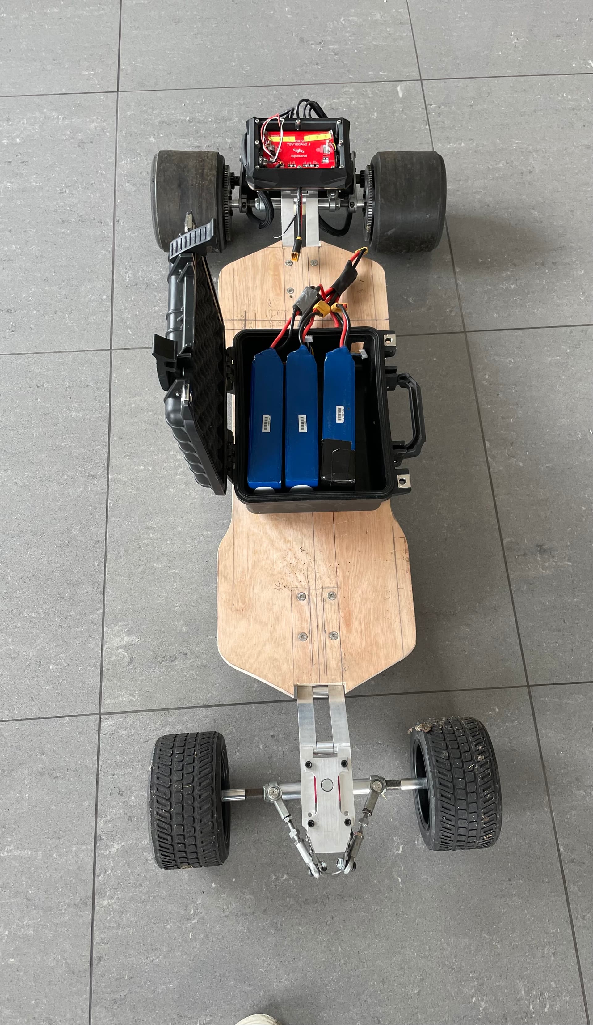 Là je regarde qu’elle géométrie peut aller en version mécano. Une fois la géométrie fixée je verrai si je peux faire une version composite. Le châssis alu avec battery box intégré et deck carbone est une autres option.