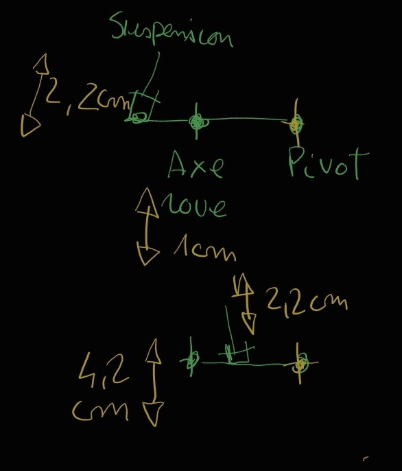 donc le point bas passe entre l’axe de roue et le pivot . donc démultiplication ![]()