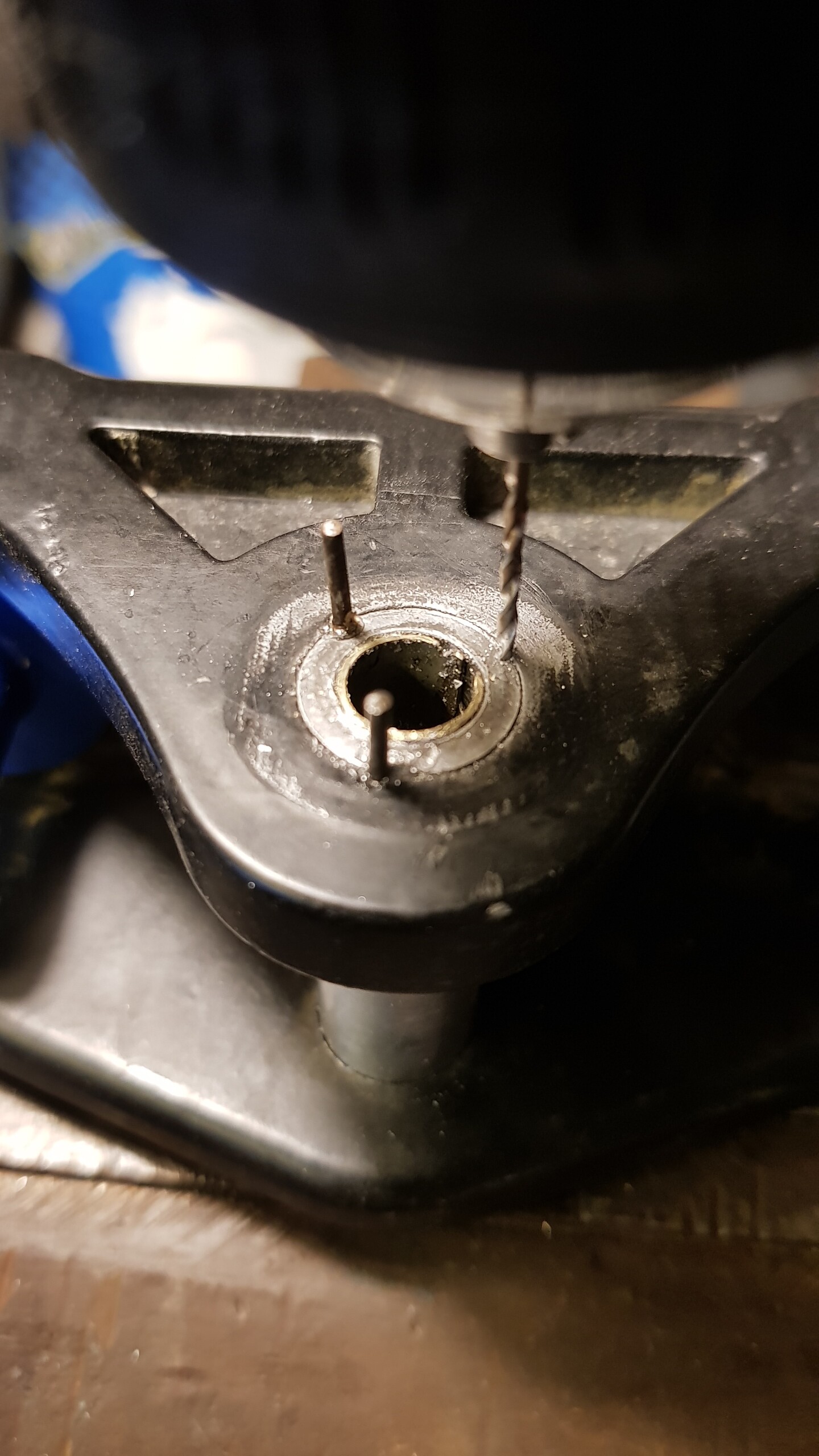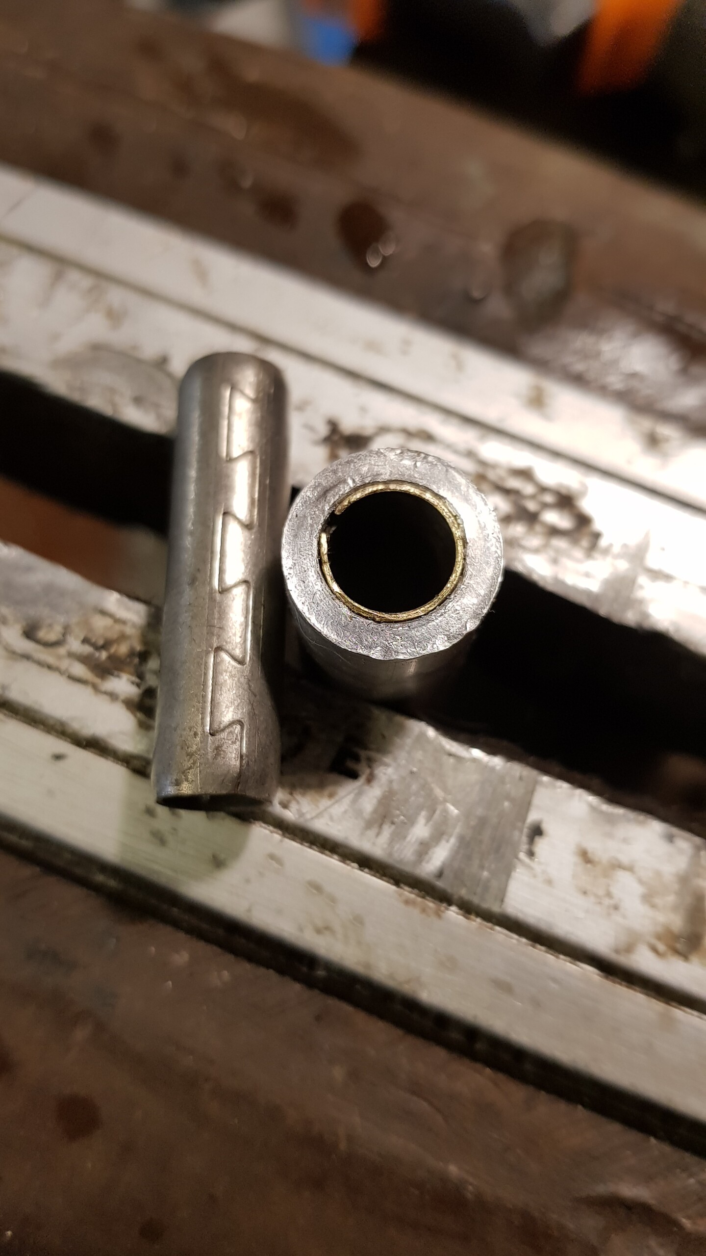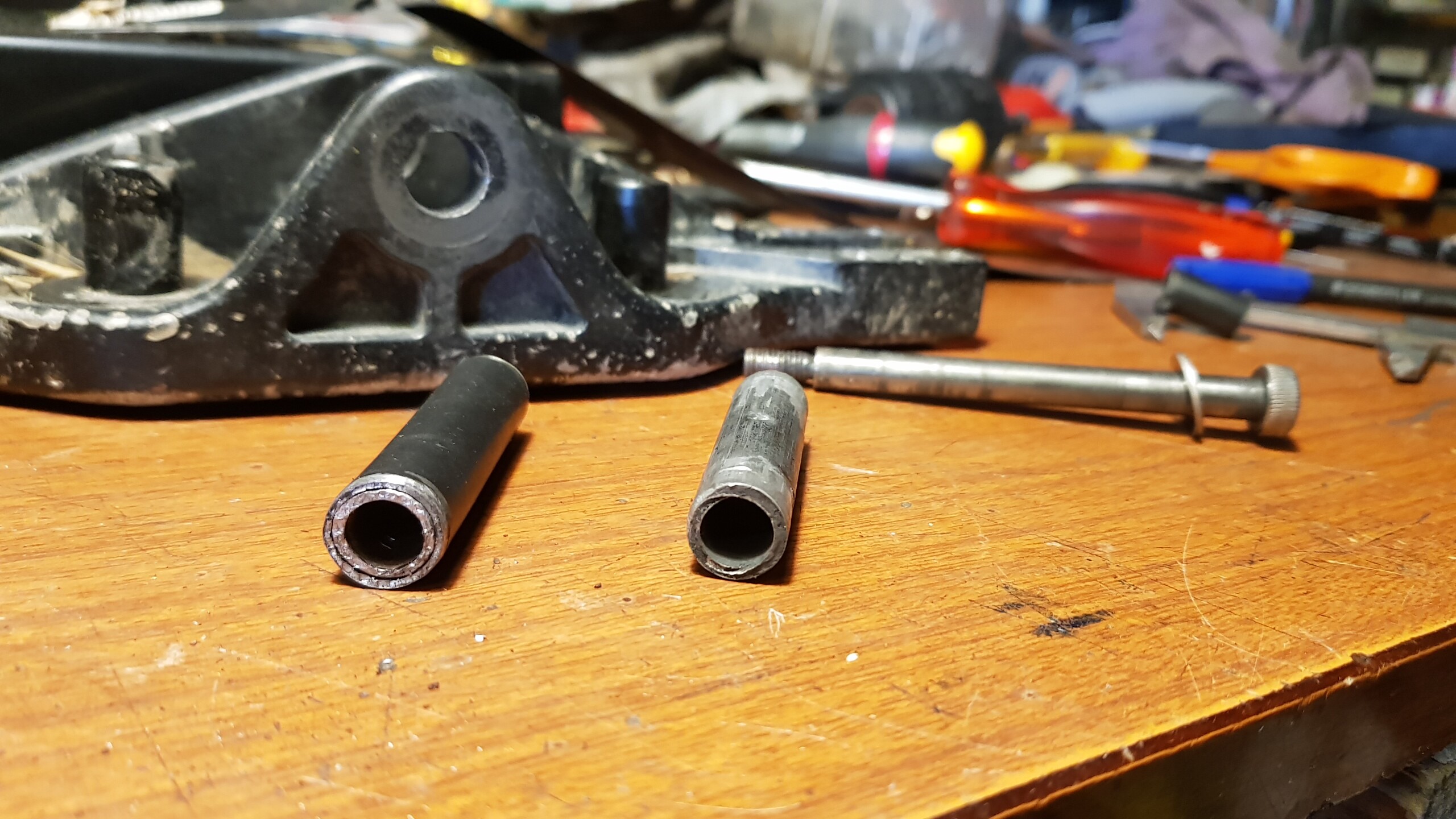 Donc trouvage de bagues de 0.5mm d’épaisseur pour annuler le jeu . Et solidarisation du tube sur le hanger avec des clous +loctite …ça bouge plus
