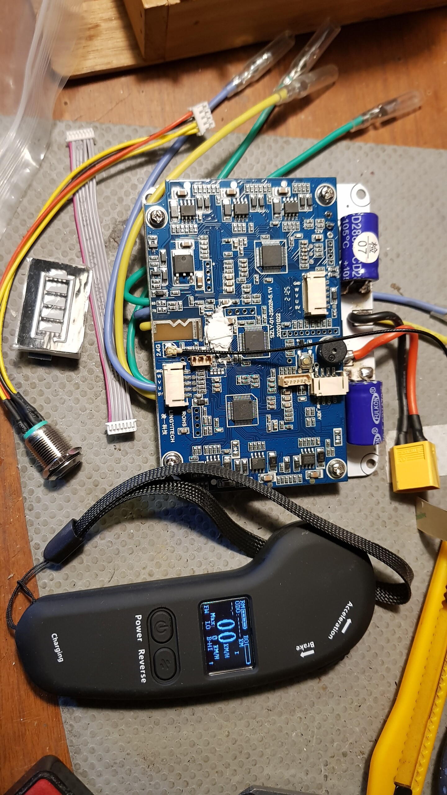 Euh…pour 66€ livré en 10 jours : push to start,jauge batterie led externe,remote ecran oled, commande éclairage depuis la remote,commande feu stop, inter on/off , patate et voltage modifiable …qui dit mieux.