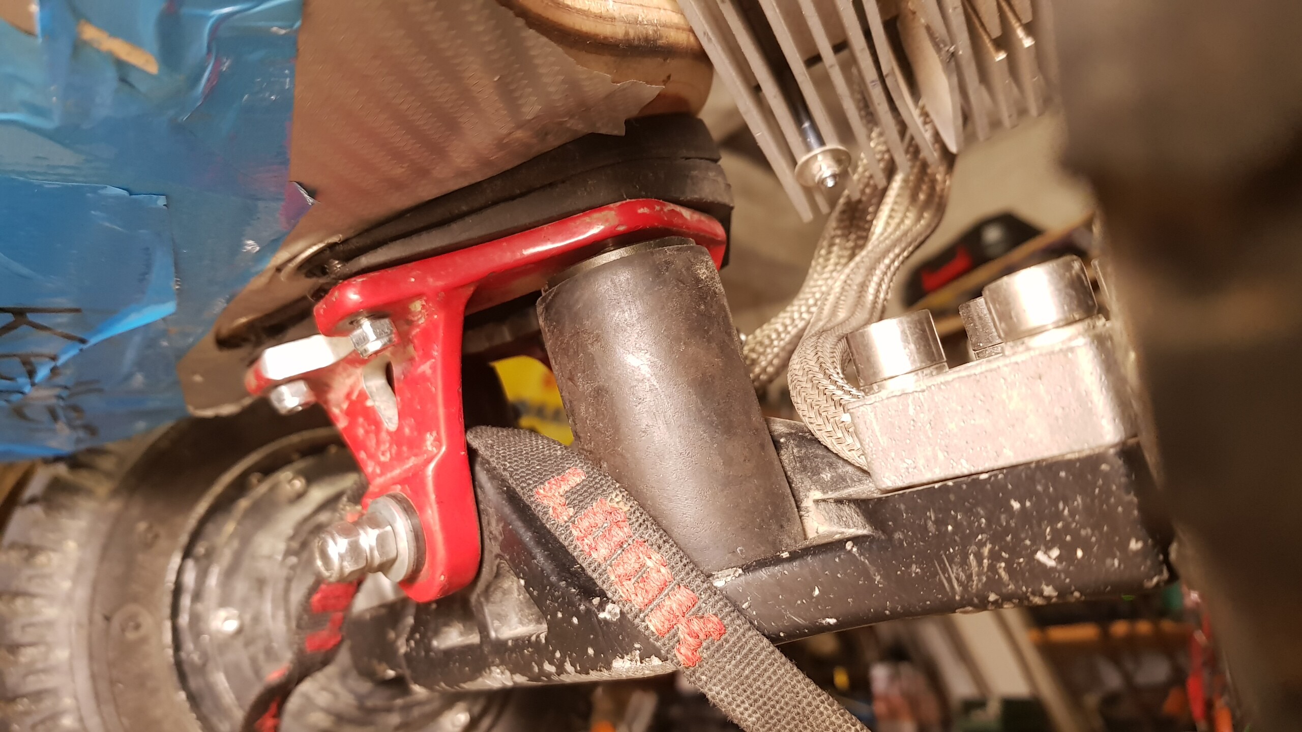 partie cycle : suppression d’une des 2 cale d’angle derriere , et ajout d’une devant .angle final AV ~40° . encire mieux . stable en vitesse et ça tourne plus court qu’avant , avec toujours le petit coup de raquette arrière si nécessaire en appuyant fort .
