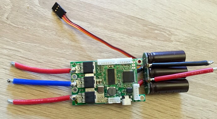 Les trois condensateurs sont sous chaque VESC; rien ne chauffe; tip top