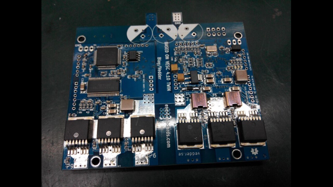 Un dual VESC via canbus (avec deux vescs séparés physiquement); ça fonctionne nickel vis à vis du temps de ride que j’ai avec le FW1.14 en PCB 4.8 et 4.10); donc je pense pas que j’upgraderais ou irais vers ça dans le court terme.